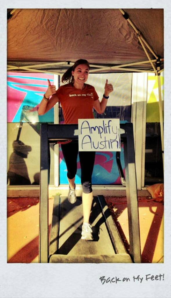 Back On My Feet Austin Chapter participated by hosting a 12 hour Treadmill Challenge to raise awareness and funds. From 7 am - 7 pm runners took shifts on a treadmill located outside of RunTex downtown. Britney Jo volunteered for the 3-4 pm shift and with a lot of cheering (and water) completed a 1 hour run for BoMF! At the end of the 24 hours, Austin surpassed its goal and raised $2.8 Million in 24 hours for local non-profits!!
